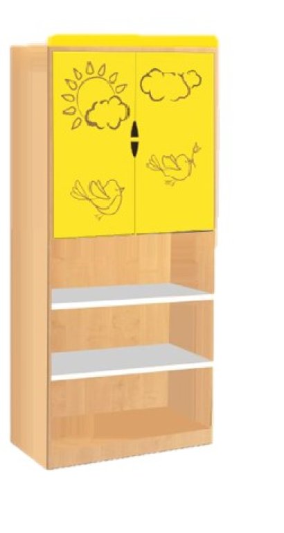 Egyedi tervezésű és gyártású szekrénysorunk "Nyár" felül ajtós színes eleme nagyszerű kiegészítője lehet a csoportszobáknak, vagy akár az otthoni gyerekszobának is. A játékos motívumok segítségével, melyek az előlapokon találhatók, a kicsik megismerhetik a nyár ismertetőjegyeit. Mérete a gyerekekhez lett igazítva. Fogantyúmentes kialakítása révén a mellette való játék is biztonságosabb. A szekrény kombinálható a 4 évszak szekrénysor többi elemével.