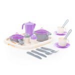 Nagyon jól felszerelt konyhát vehetsz birtokba. A műanyag játék bútor alap színei piros, fehér és vajszínű. A tűzhely lapját és a mikrosütő elejét jelző matricát - ha ügyes vagy - te is felragaszthatod. A szettben edényeket, evőeszközöket, sószórót, poharat is találsz. A főzés során fontos a tisztaság, tehát gyakran moss kezet az oldalra elhelyezett mosdóban.