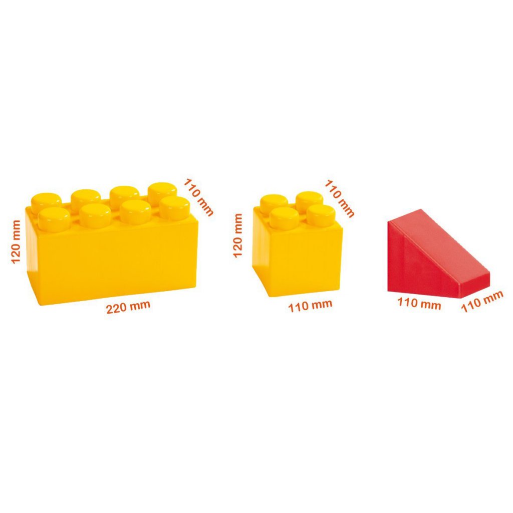 Hatalmas házat, falat, paravánt építhetsz ezekből az extra nagy kockákból. A készletben tégla, kocka, és háromszög formákat találsz. Az elemek lekerekítettek, kiválóan illeszkednek egymásra. Az óriás építőkockák nagyon előnyösek óvodai, bölcsődei csoportok számára.